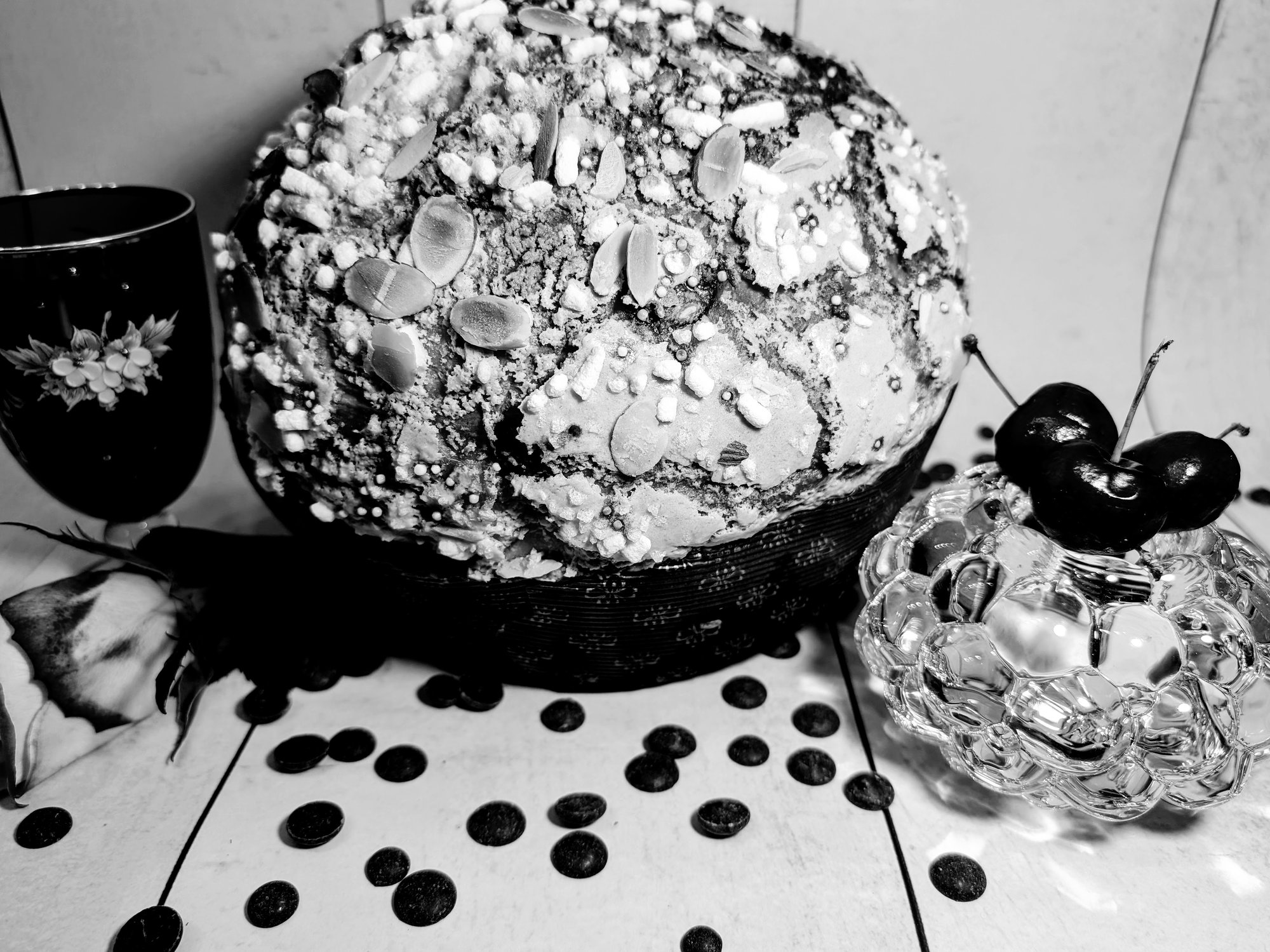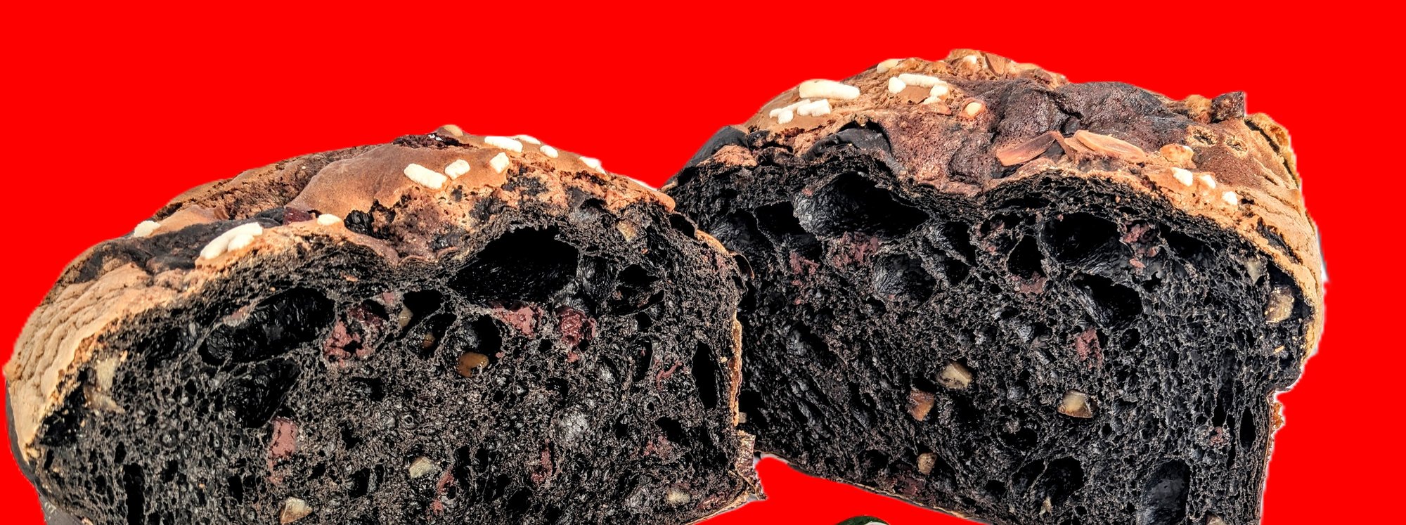 Dark, dramatic, and deeply romantic. Amore e Chianti Nocturnum is our Valentine’s interpretation of a chocolate‑cherry dream: a rich dough infused with Belgian black cocoa, studded with Montmorency cherries soaked in Chianti and amarena syrup, and finished with ribbons of Belgian dark chocolate. The flavor is bold and velvety, with notes of wine, cacao, and late‑night decadence.
